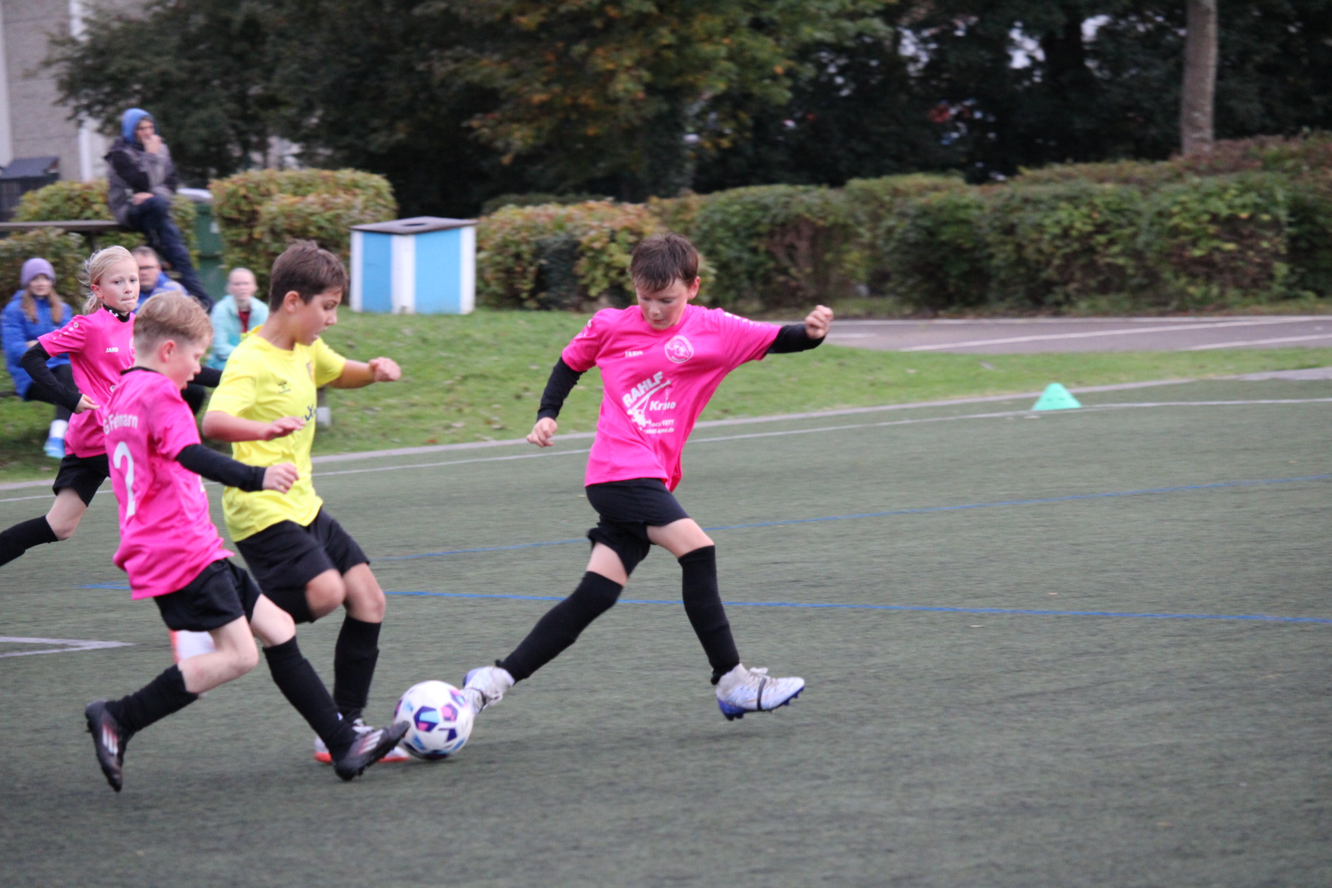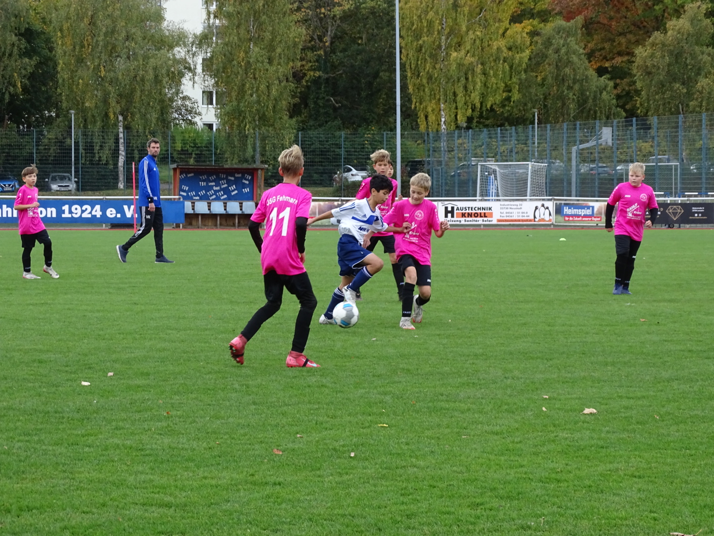 SV Neukirchen - D I 2:2 (1:1): Rechtzeitig angekommen, stand erstmal Warten auf dem Programm. Für die Fehmaraner war es nur eine halbe Stunde zum Umziehen und warm machen, doch sehr ungewohnt. Der SV Neukirchen brachte eine sehr gut eingespielte Mannschaft aufs Feld, die in der letzten Saison Kreismeister in der E-Jugend wurde. Gutes Pressing der Inselkicker in der Anfangsphase führte direkt zum 0:1 in der erstenMinute. Die Jungs spielten schön hinten rum über Michel Deneke im Tor, der Lennox Sander und Max Rahlf durch die Abwehrkette der Neukirchener schickte. Sander ging gekonnt durch und schob den Ball ins Netz. Es entstand ein gutes ruhiges Spiel auf beiden Seiten. Dann kassierte die JSG nach Ballverlust im Mittelfeld den Ausgleich (29.). Nach der Halbzeitpause konnte sich Aki Serck-Scheel den Ball an der Mittellinie erobern und setzte sich im Alleingang durch, spielte die Abwehrkette aus und schoss perfekt ins obere kurze Eck. Das Spiel war ausgeglichen, mit schönen Szenen auf beiden Seiten. Ein schöner Ball vom SV Neukirchen aufs Tor, Deneke im Tor konnte nur abprallen lassen und ein Neukirchener war zur Stelle - 2:2 (48.). Im Spiel der Fehmarner wurde es unruhiger, Bälle wurden lang, es wurde nicht mehr richtig gemeinsam gespielt, der Versuch das 3:2 zu erzielen scheiterte mehrmals." Es war ein schönes ausgeglichenes Spiel auf Augenhöhe mit etwas Nervosität im letzten Drittel, aber definitiv ein Punktegewinn", resümierte das Trainergespann Andreas Deneke und Catherina Lafrenz.