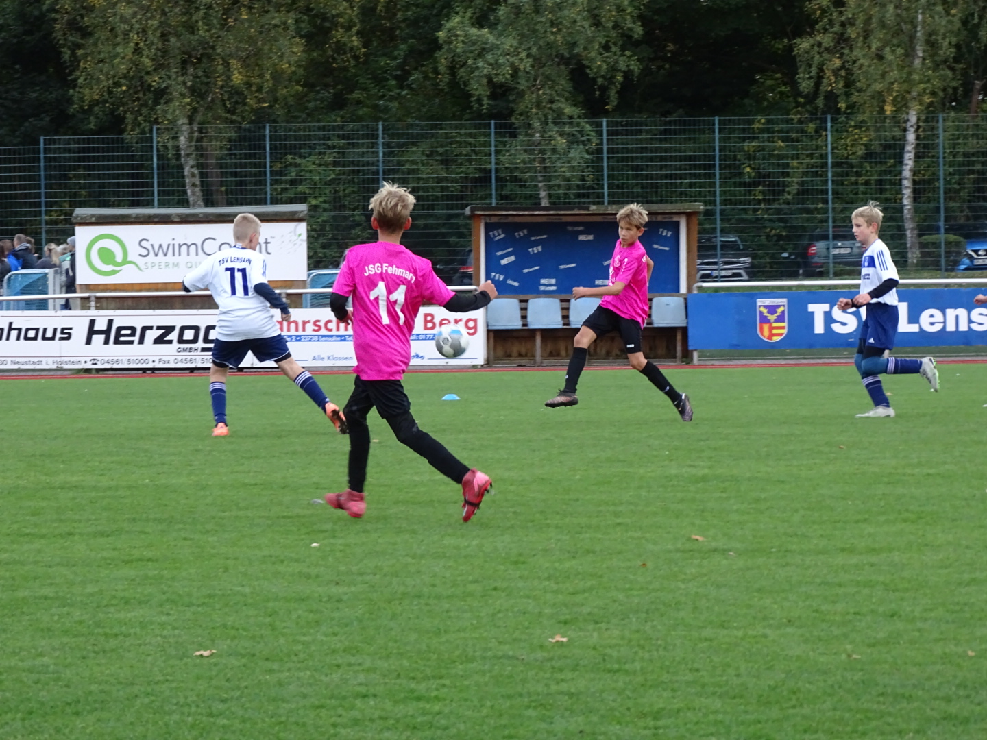 TSV Lensahn - E I 2:5 (2:1): Die ersten Minuten haben die Spieler der JSG ordentlich gepennt, sodass in kürzester Zeit zwei Gegentore fielen. Doch in der fünften Minute sorgte Leon Lippert nach einer Vorlage von Lui Knop für das erste Tor der Gäste. In der Halbzeitpause wurden die Spieler von den Trainern nochmal mit aufbauenden Worten und Müsliriegeln gepusht. Hauke Albert drehte einen Eckball direkt ins Tor (27.). Dann war es die starke Abwehrspielerin Philippa Höpner, die nach einer Ecke den Ball an sich nahm und auf 2:3 erhöhte (41.). Nach einem Abstoß von Keeper Jonathan Schmitz prallte der Ball an die Latte und Albert verwandelte den Ball mit einem Nachschuss (44.). Die Lensahner versuchten immer wieder zu kontern, doch ein Durchkommen durch die standfeste Abwehr der JSG war kaum möglich. Noch einmal nahm Keeper Schmitz den Ball auf und schaffte einen sensationellen Abstoß nach vorne, wobei der Ball auf dem Kunstrasen aufprallte und über den gegnerischen Torhüter direkt rüber ins Tor hüpfte. (46.). "In der zweiten Halbzeit verlief das Spiel eindeutig besser mit vielen Pässen und ordentlichem Pressing, sodass wir das Spiel noch verdient gedreht bekommen haben", so das Trainerteam Kerstin Bürger und Sebastian Wagener.